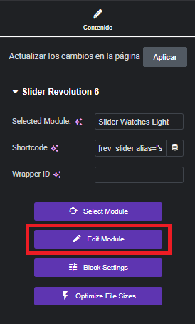 Dentro de las opciones del widget, vas a ver un botón que dice “Editar Modulo” o un enlace similar.